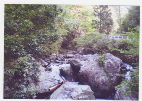 新緑の大沢渓谷、木々を色どる紫の藤の花、