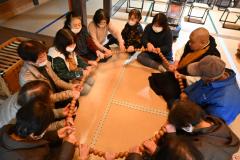 「年おとこ」「年おんな」が大きな声で「鬼はそと」「福はうち」と、「一年間健康に過ごせるように」と願いを込めて豆まきを